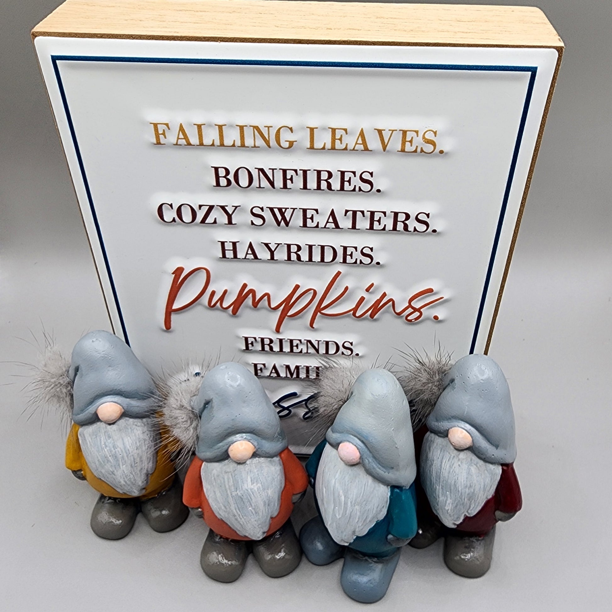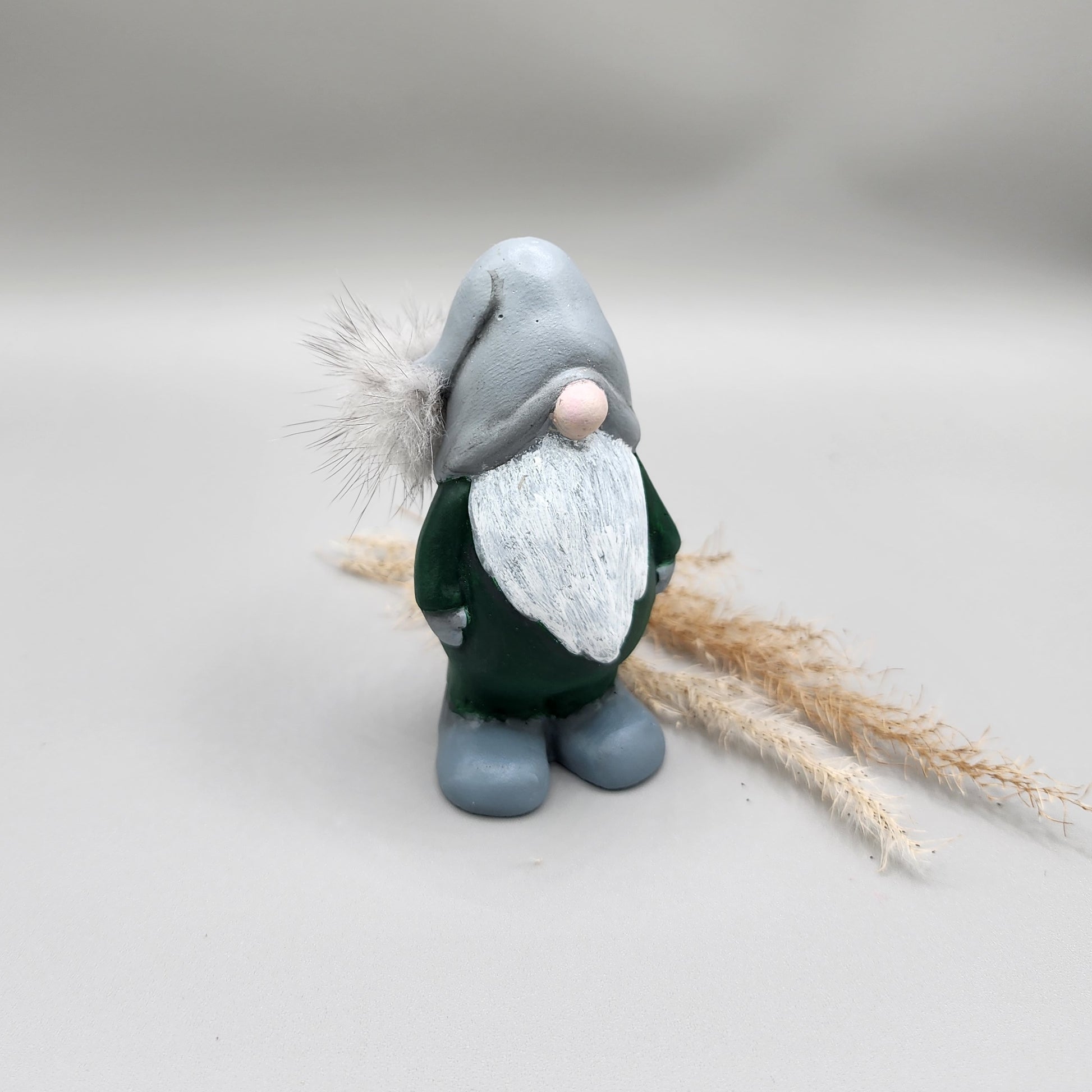 The newest addition to my gnome family! I have named this sweet little guy Birch. Birch is all ready for Fall and available in 4 different Woodland colored overalls. Birch would be a wonderful addition to a tree slice coaster to sit on a table or shelf. Each gnome has grey shoes, mittens and an adorable pink nose. The grey hat also sports a gray pompom.