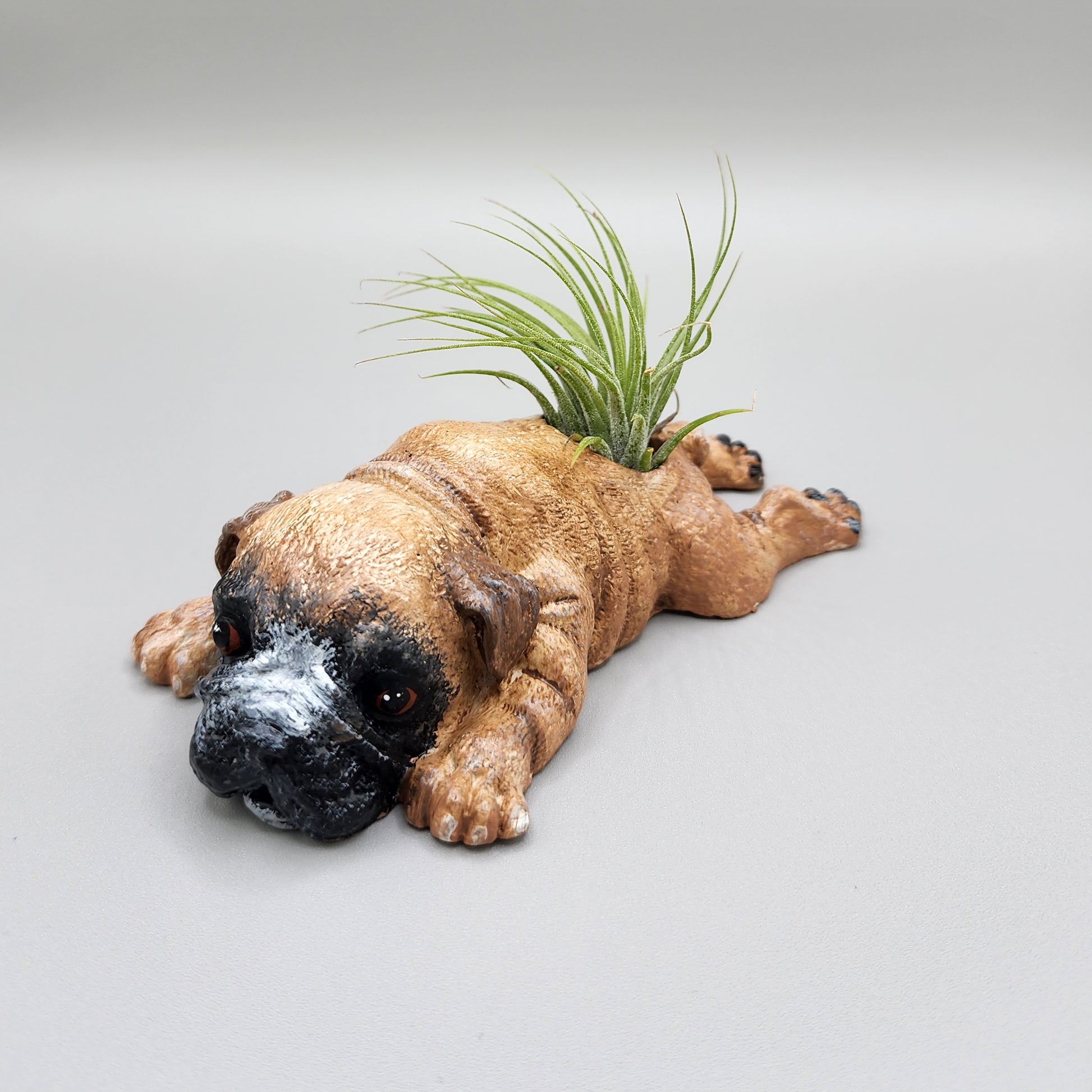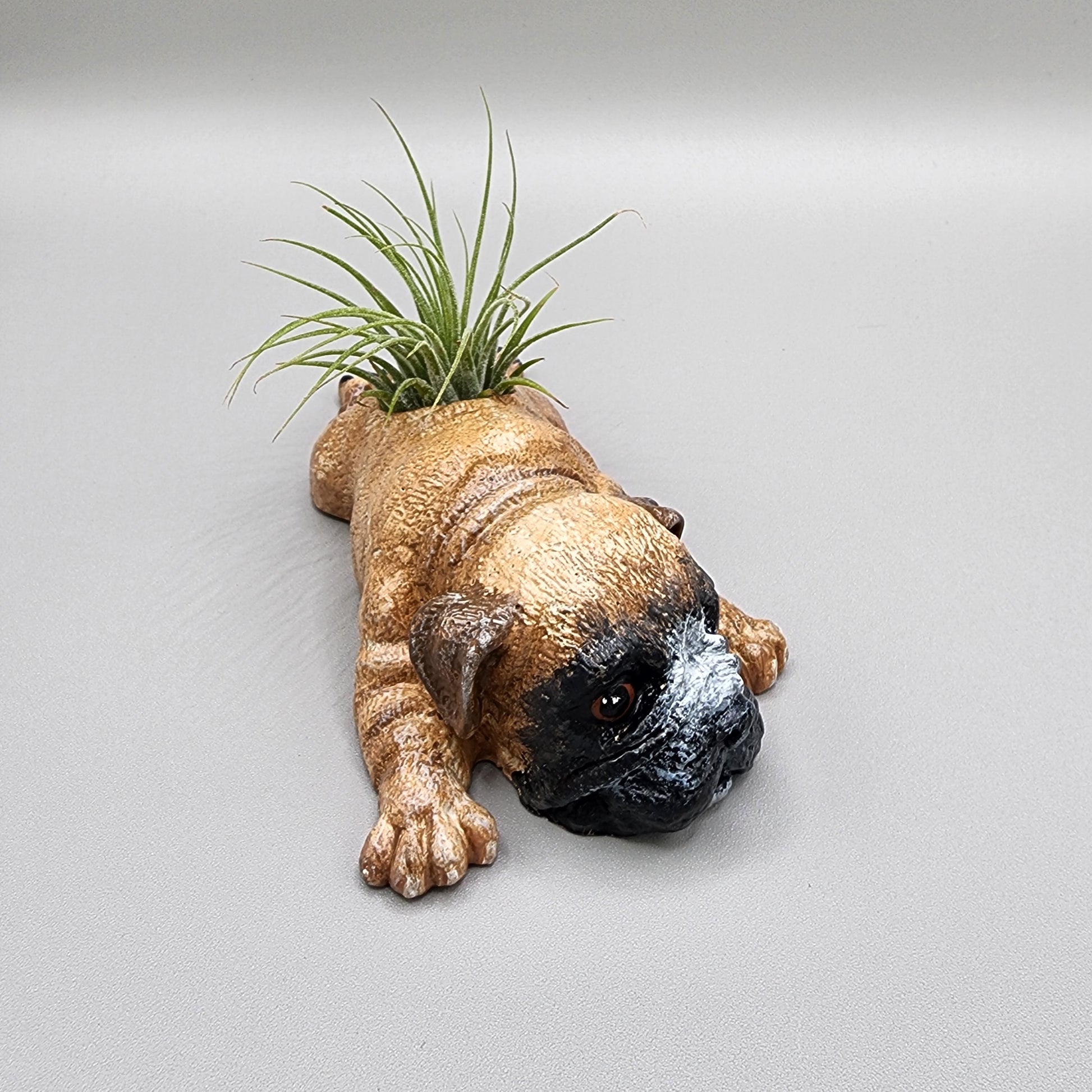 This adorable air plant holder is painted to look like a boxer pup. It can be painted in a variety of colors. Let me know if you have something custom in mind and I'll do my best. Boxer is sanded and sealed.