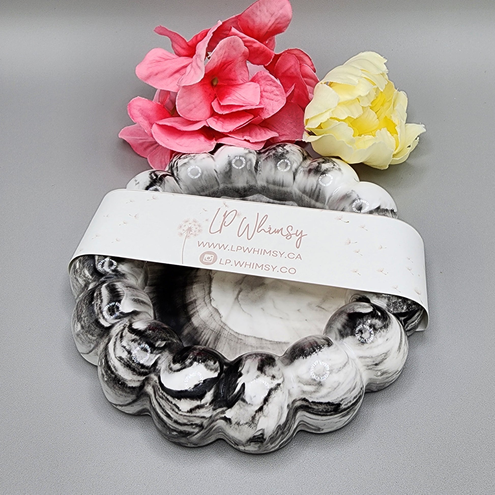 The bubble edges of this coaster add a visually appealing way to display all your treasures or protect surfaces. This design will add a playful and modern touch to any space. Coasters are sanded, sealed and have cork bottoms.