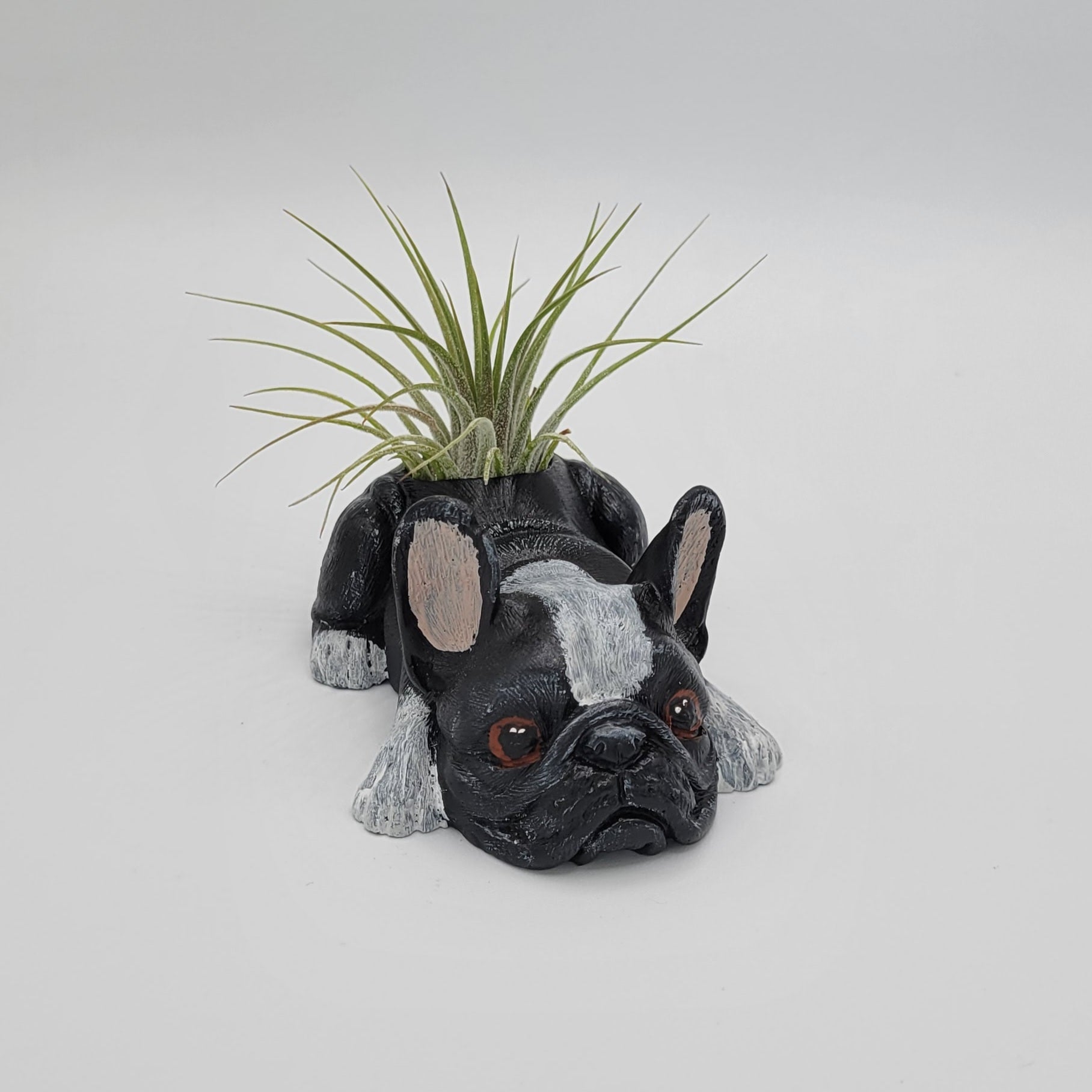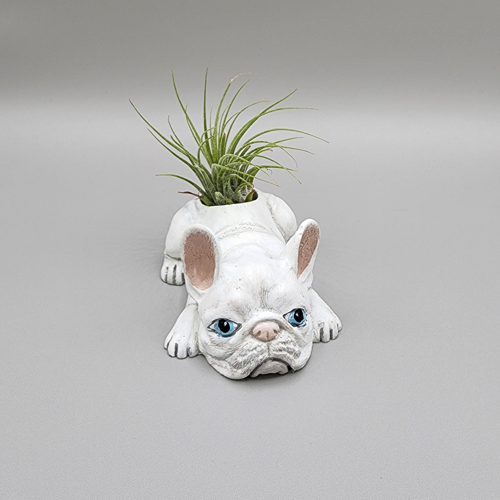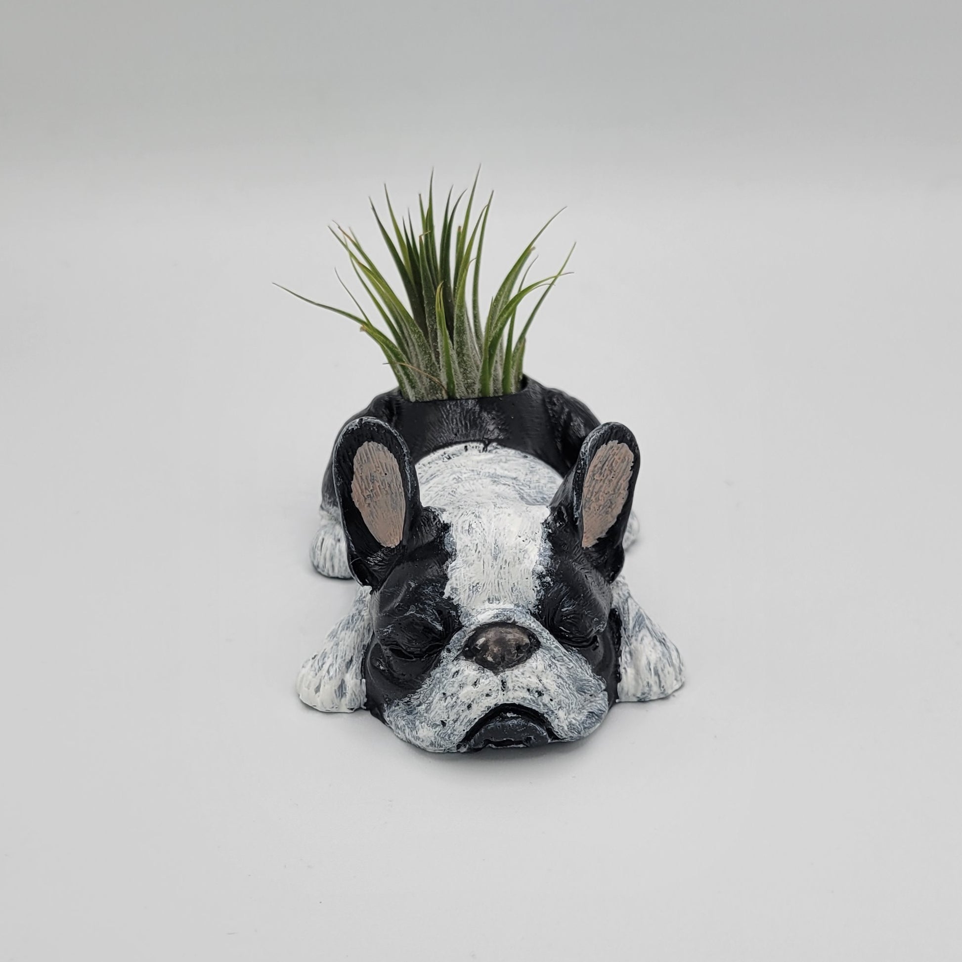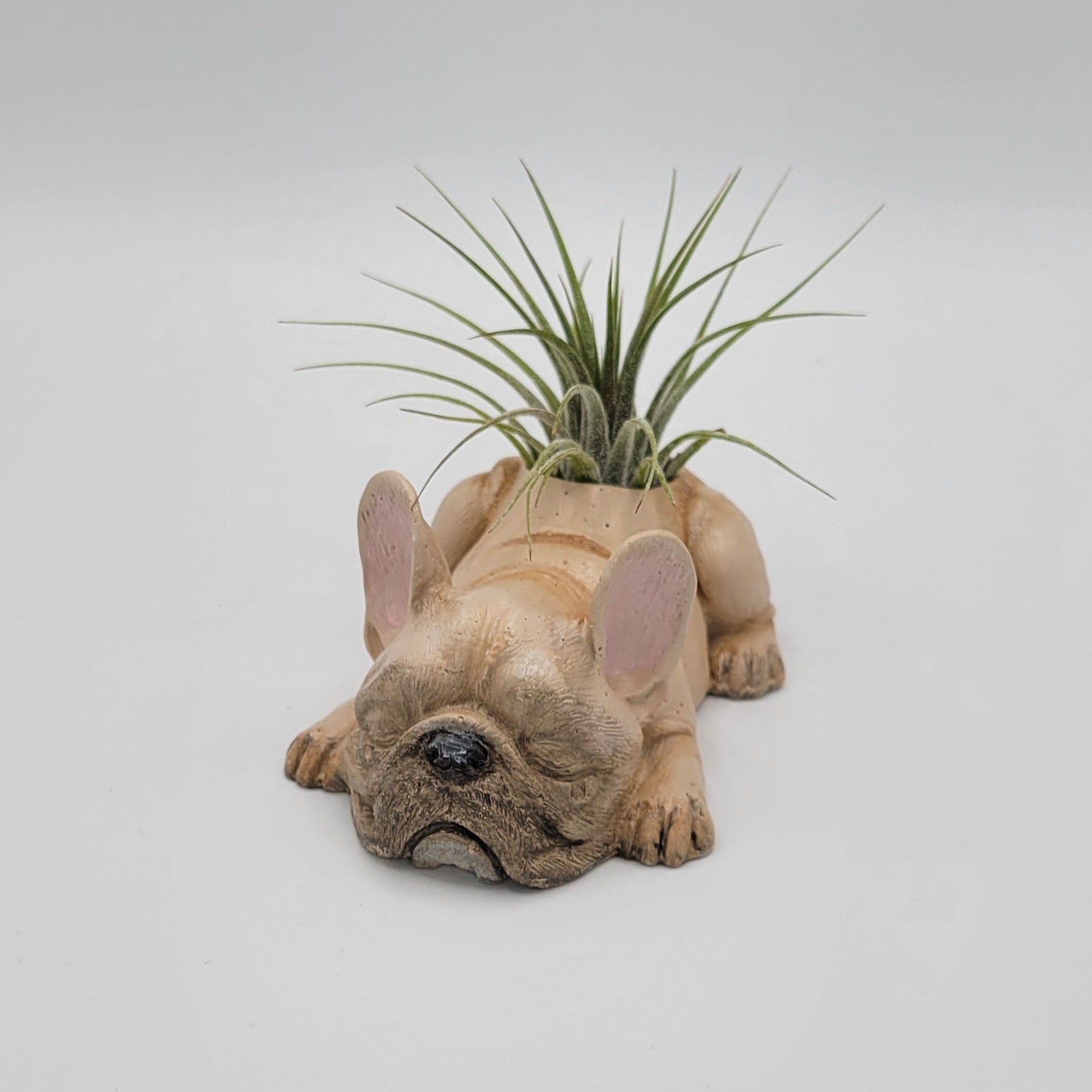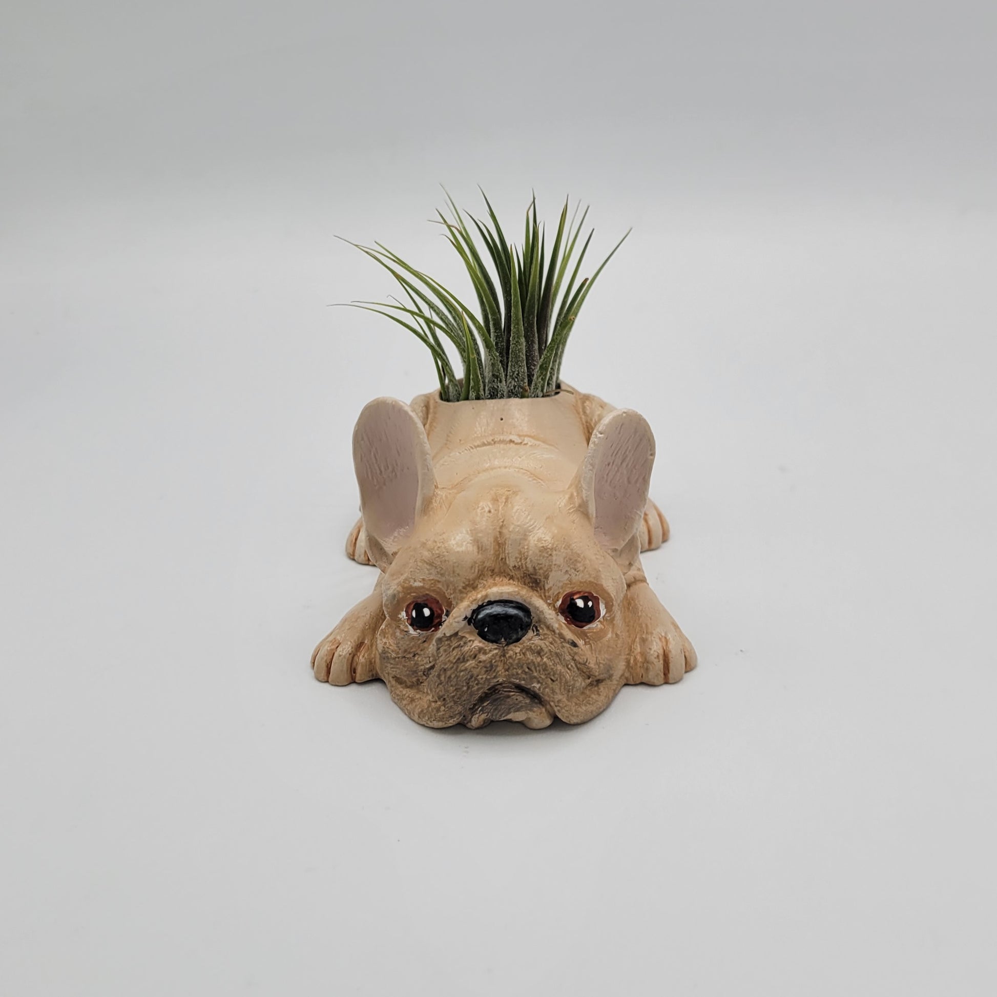 This adorable air plant holder has been painted to look like our dog named Doug. Doug can also be painted in a variety of colors and with eyes closed or open. Doug is sanded and sealed and will look adorable sitting on your table or desk. Please contact me for a custom looking Doug.
