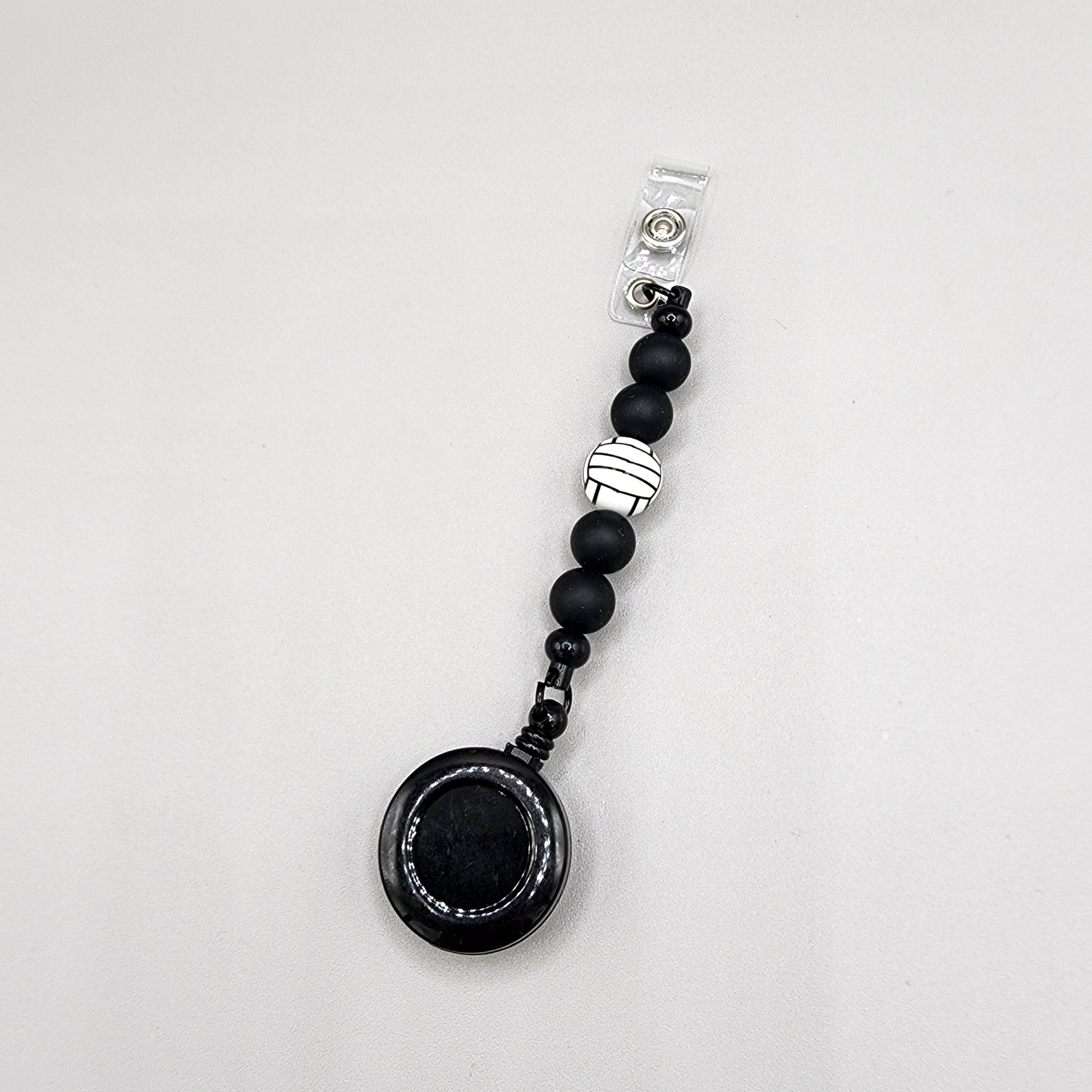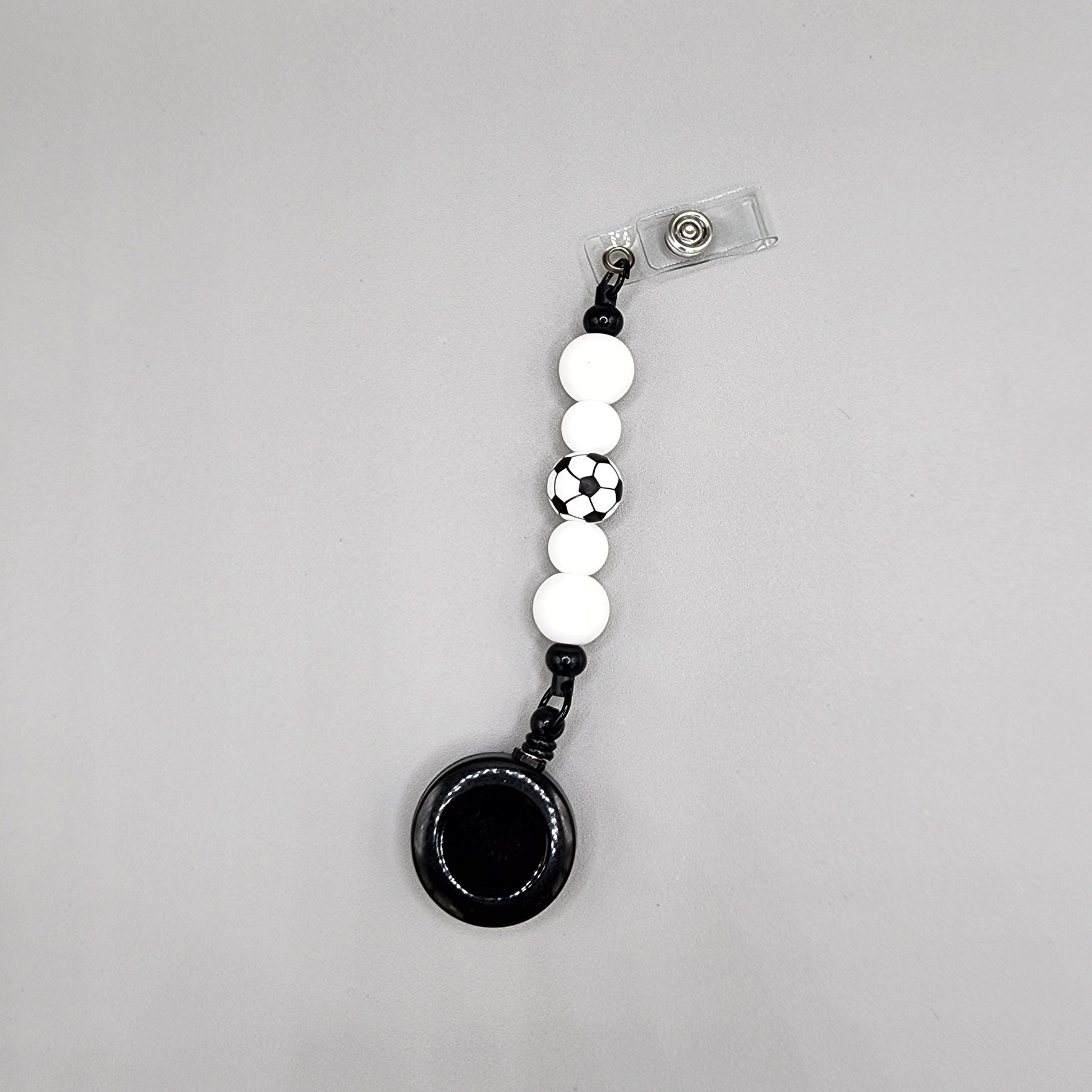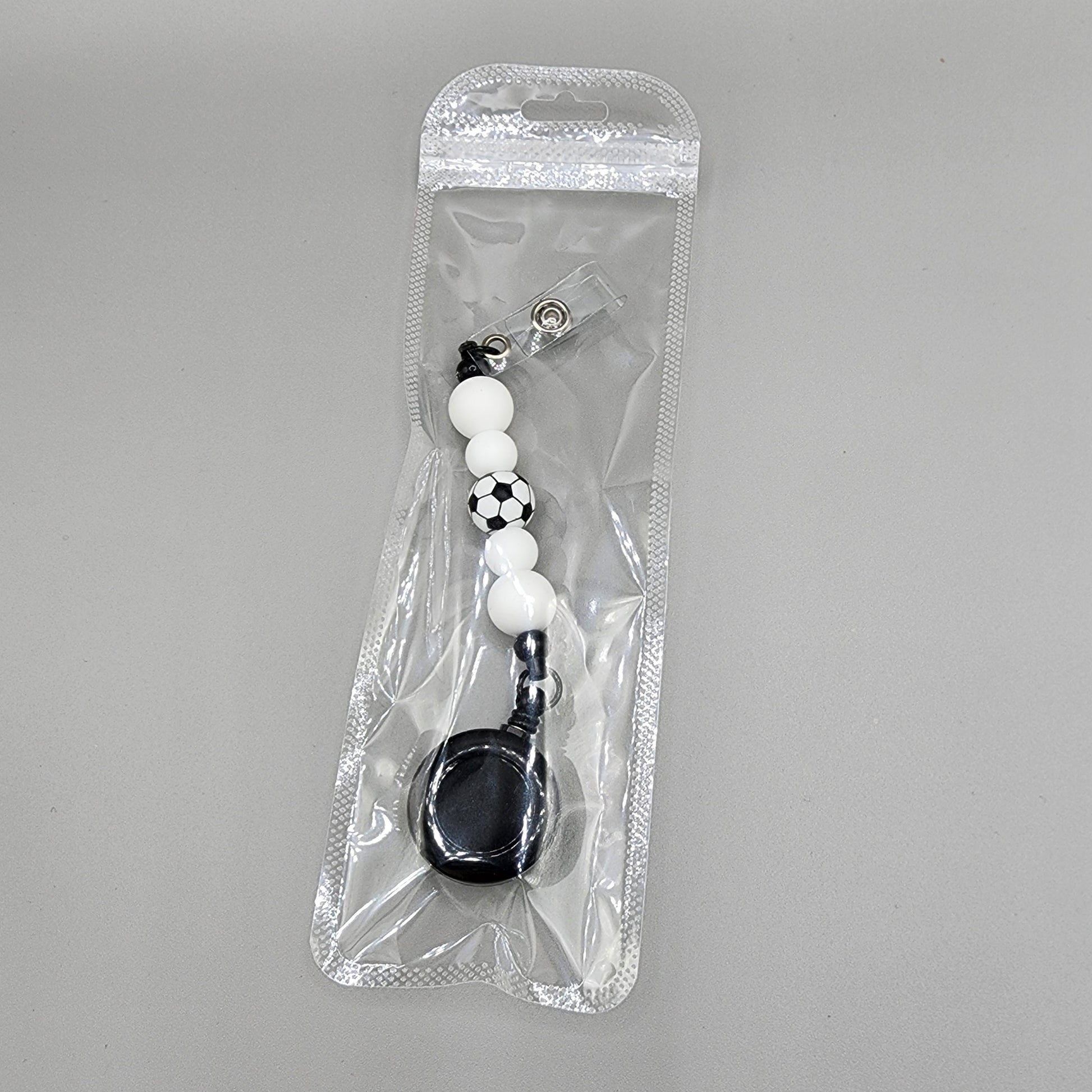 These innovative extendable keychains feature a retractable cord and array of sports themed silicone beads.