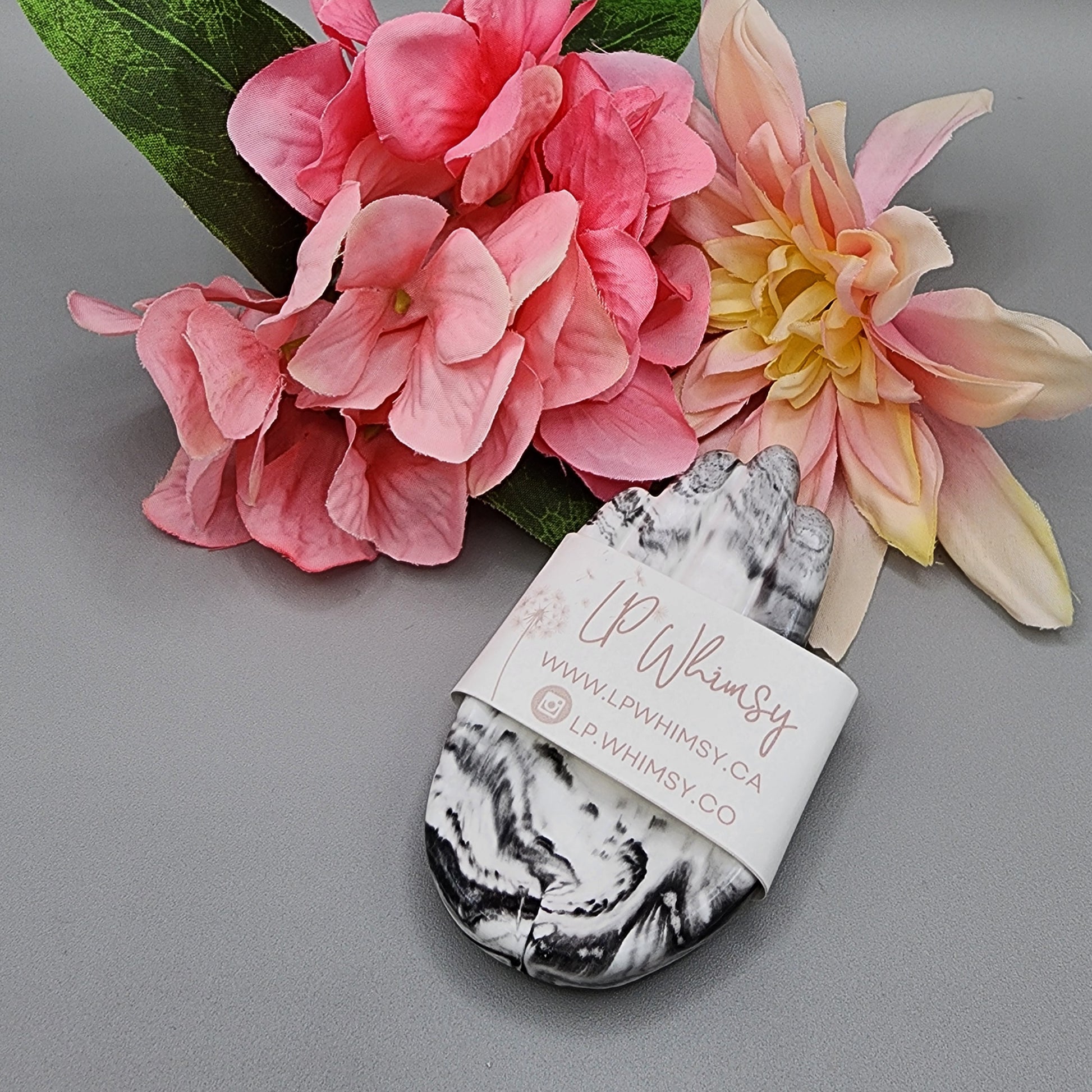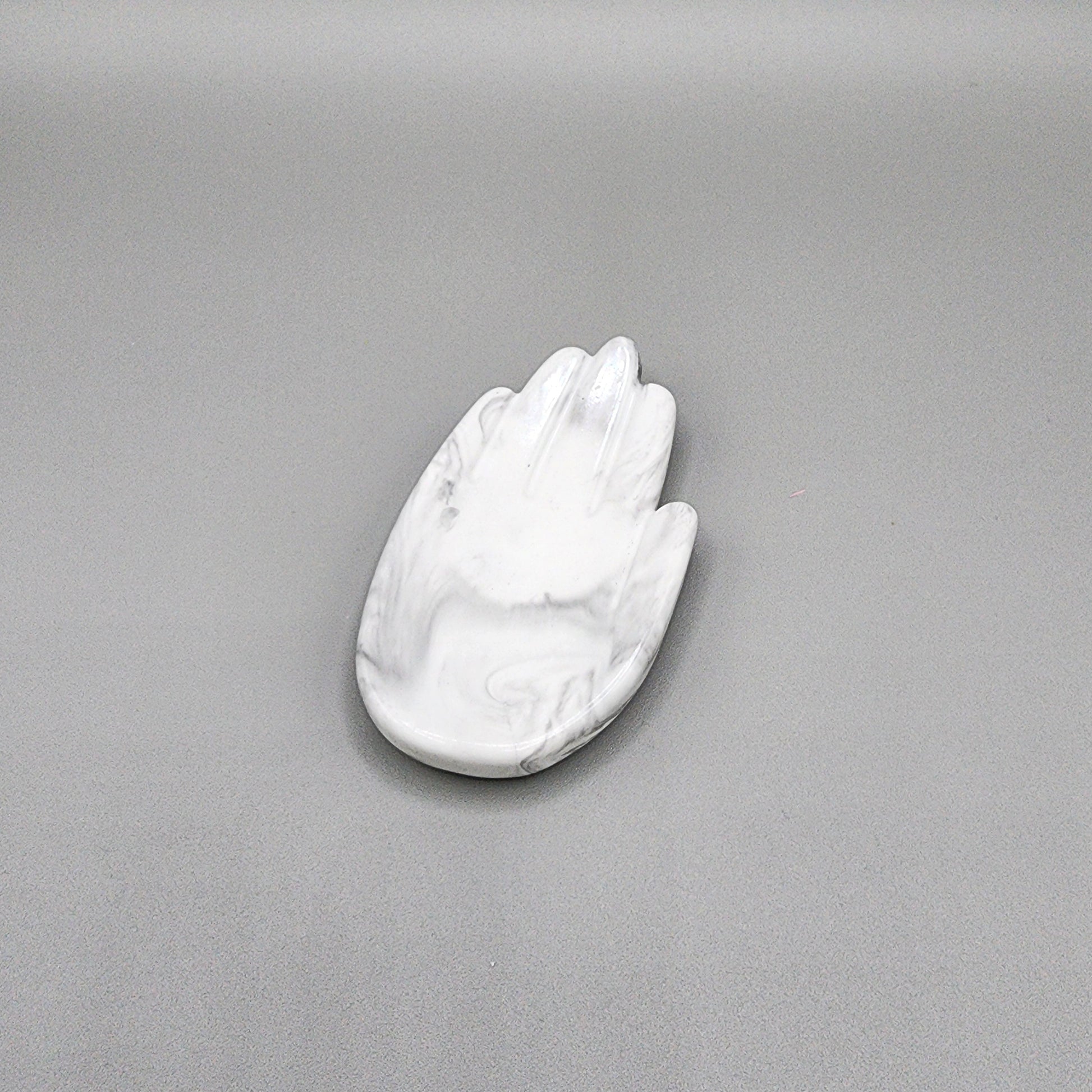 These sweet little hand dishes are perfect for displaying gemstones or any of your treasures. They are one of a kind made with marble look concrete.