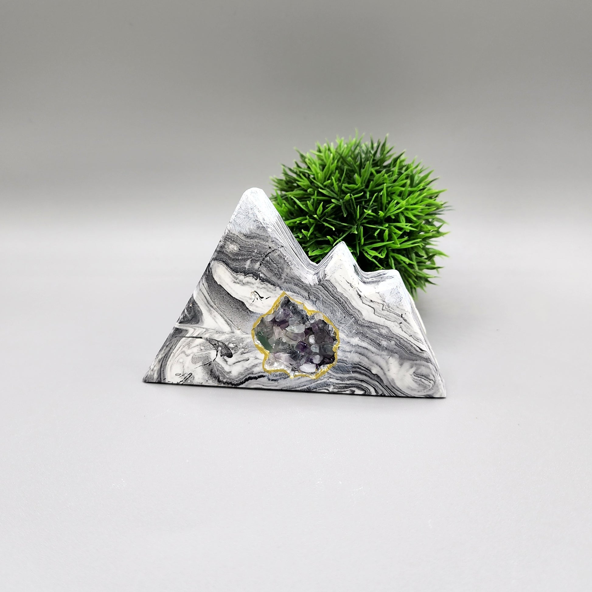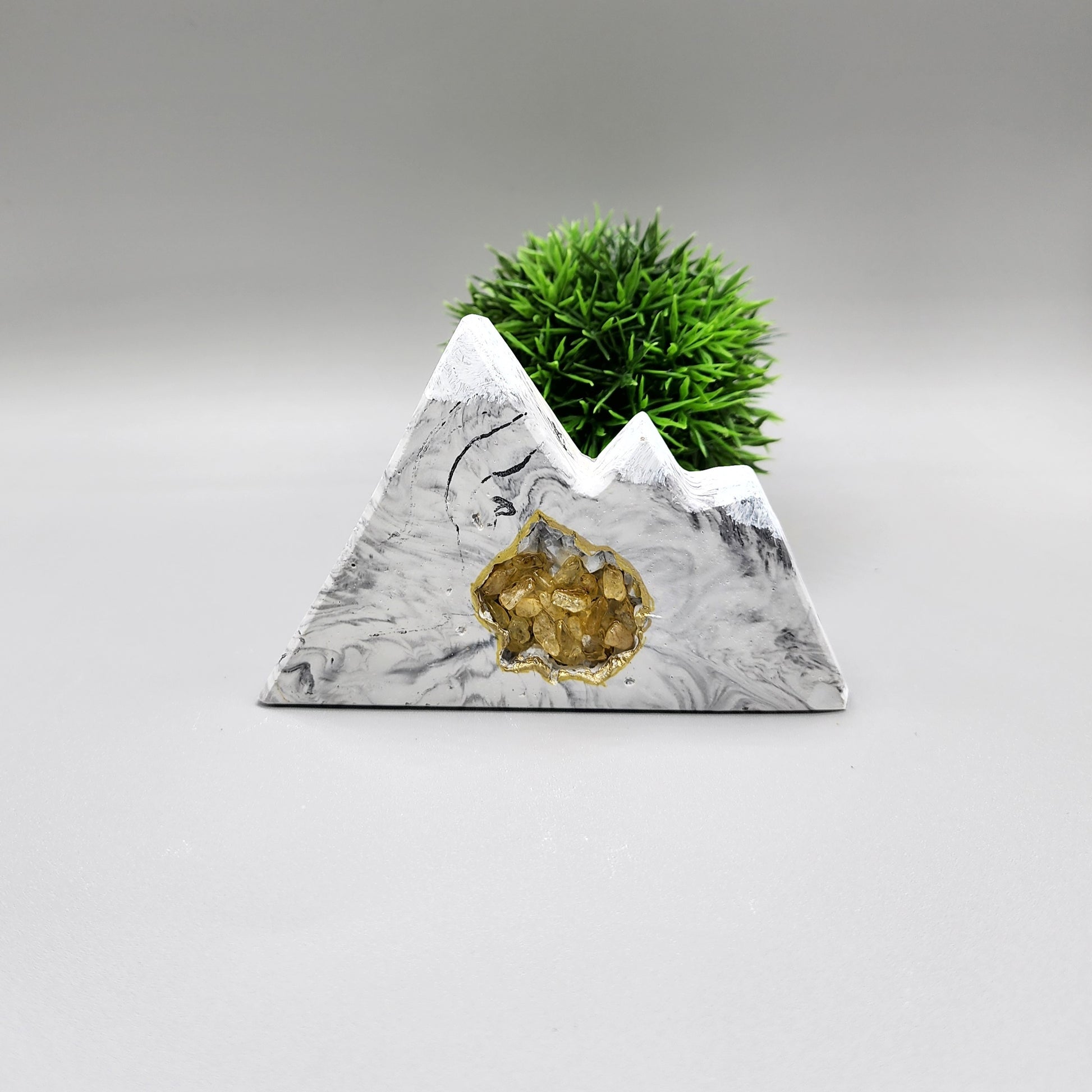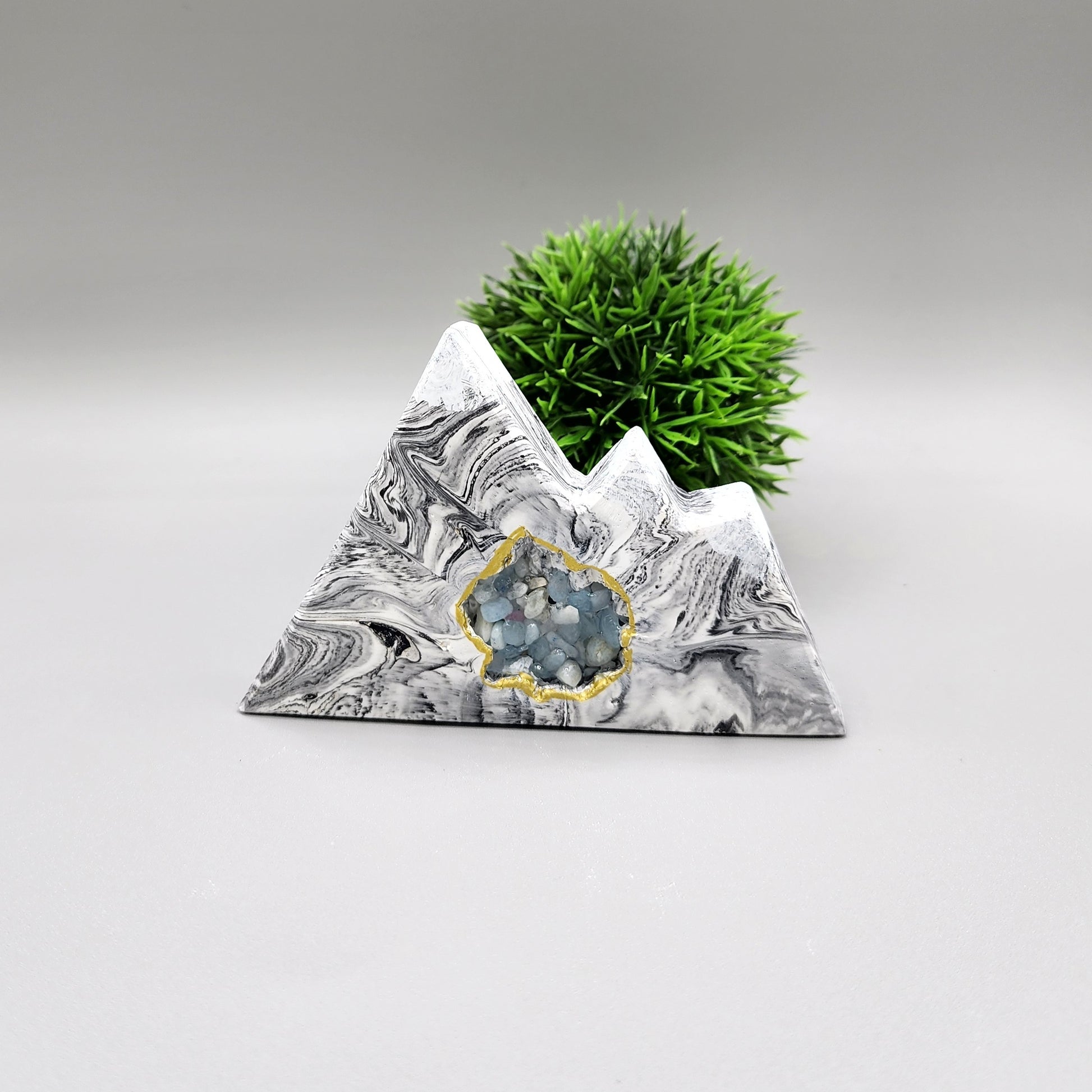 Experience the rugged beauty of nature with my handcrafted ceramic resin mountains. Each piece is unique with a striking geode center and sparkling gemstones. Perfect as statement decor piece, these mountains bring an element of modern elegance and natural wonder to any space.