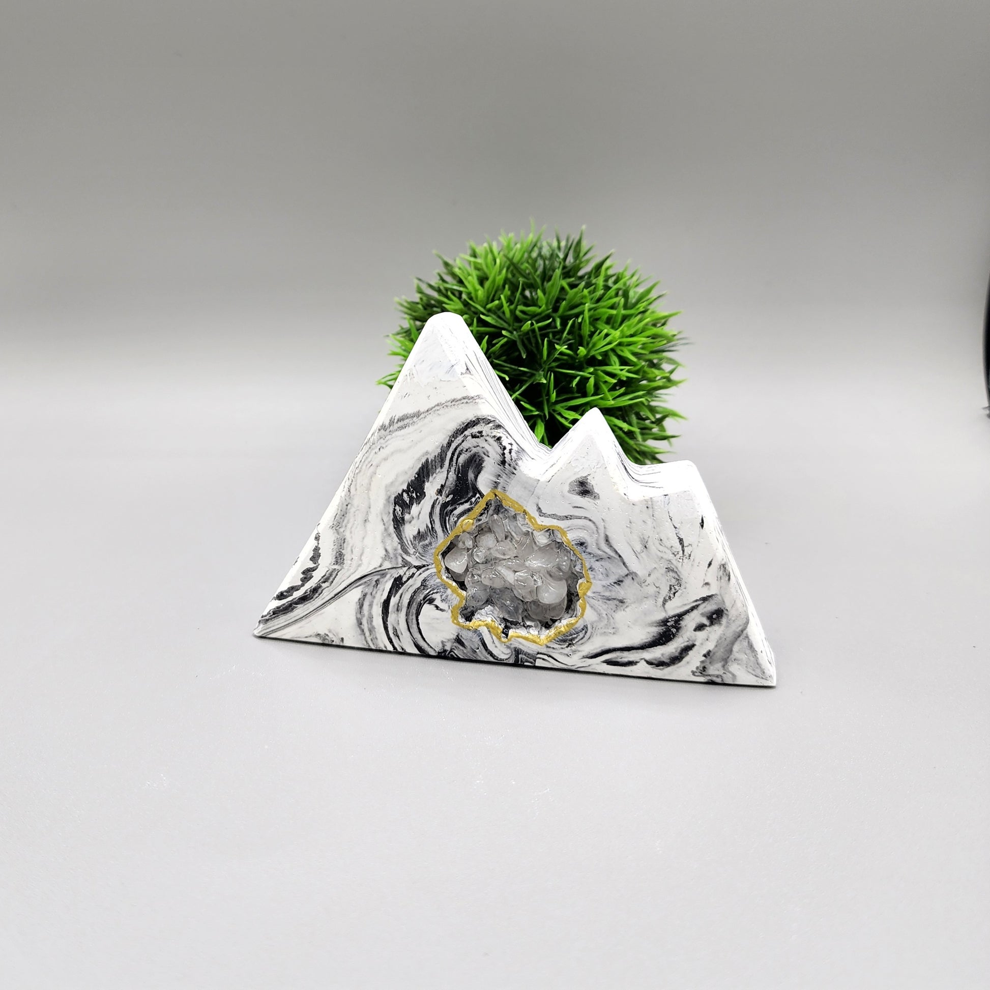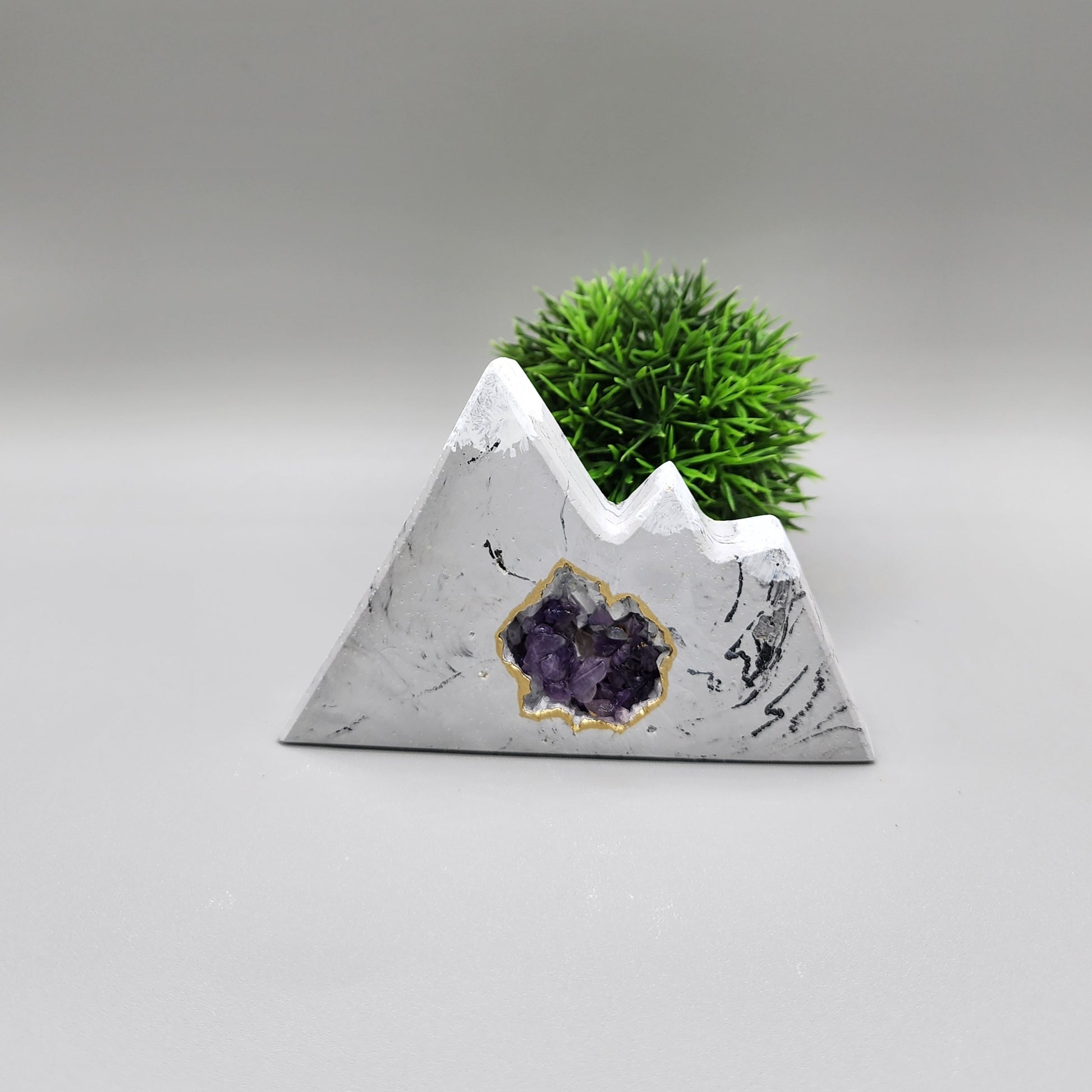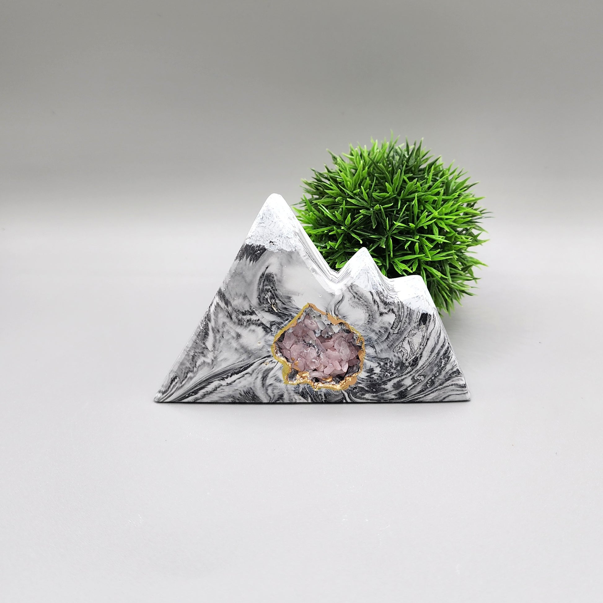 Experience the rugged beauty of nature with my handcrafted ceramic resin mountains. Each piece is unique with a striking geode center and sparkling gemstones. Perfect as statement decor piece, these mountains bring an element of modern elegance and natural wonder to any space.
