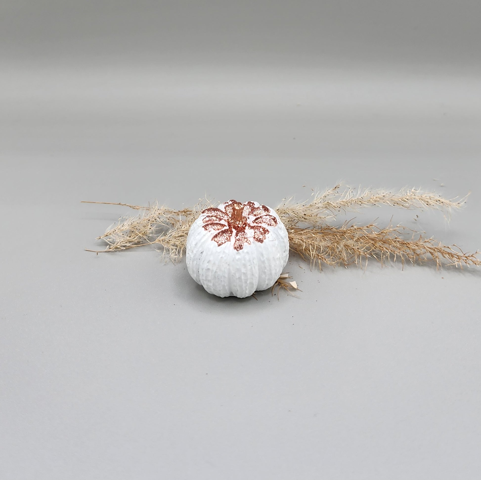 Looking for stylish Autumn decor? These mini pumpkins are perfect to coordinate with the bigger sizes for the perfect display. They are available in 6 muted vintage colors, black and white with metallic stems and corresponding glitter highlights. Each pumpkin is sanded, painted, highlighted and sealed.