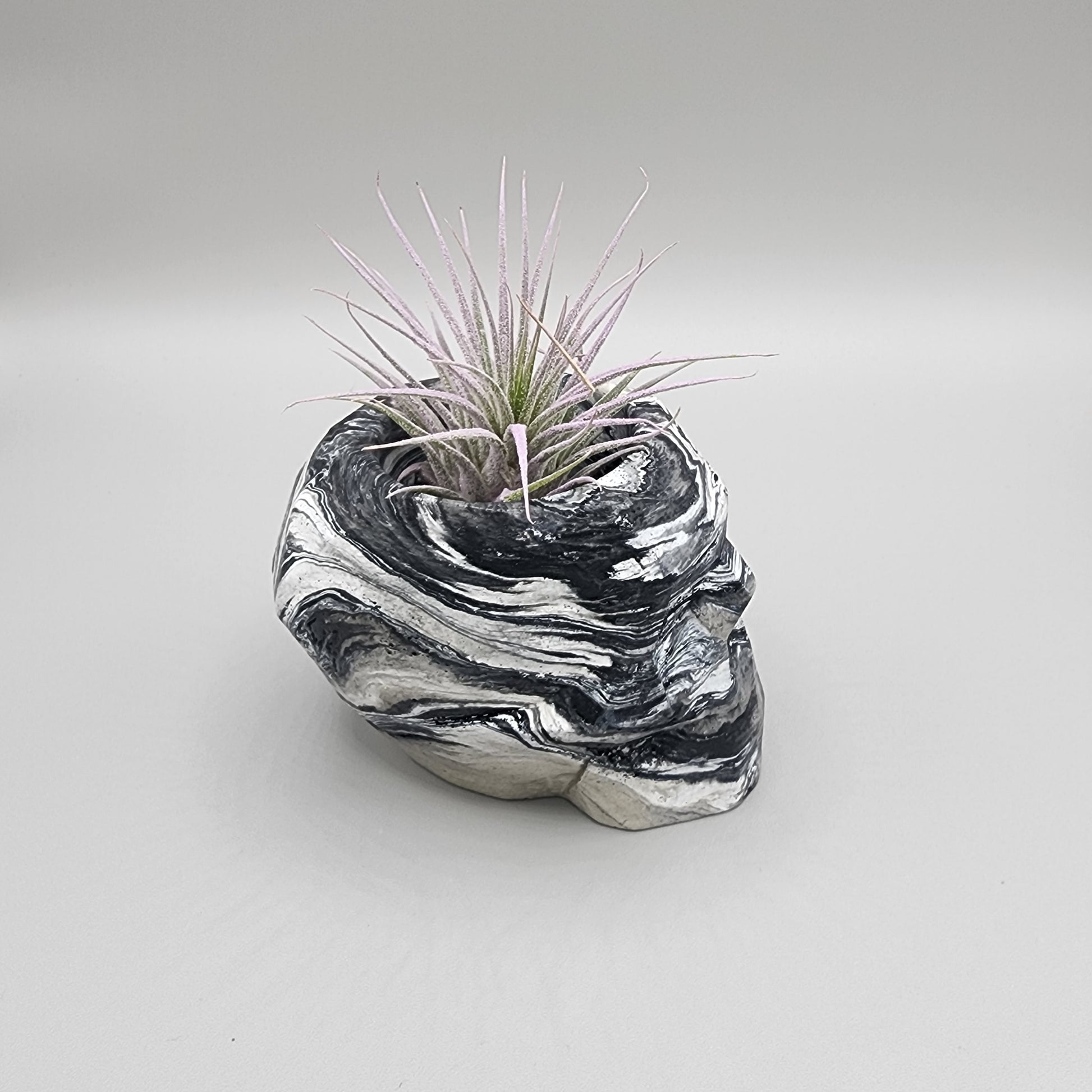 The Skull Planter is perfect for holding small succulents, air plants or any small items such as paper clips. They are made with marble look concrete, sanded and sealed.