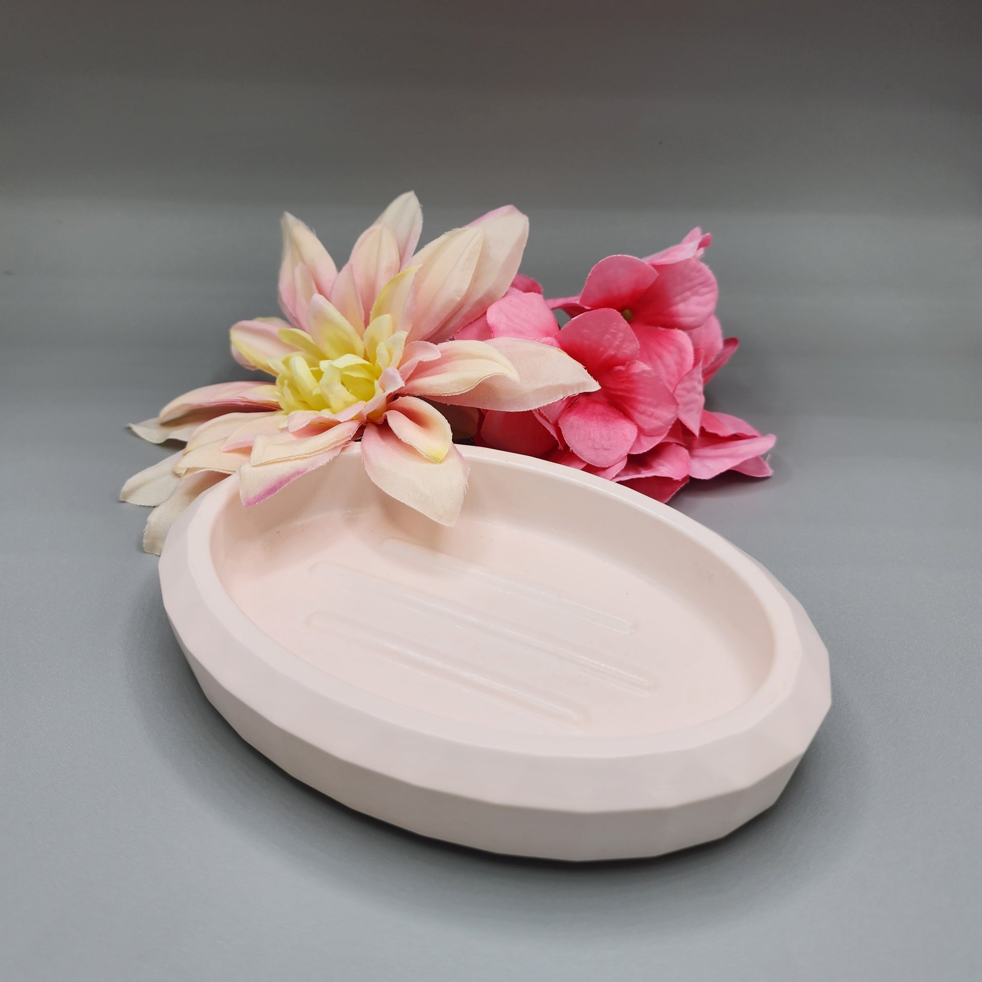 These oval soap dishes are made using a eco-friendly ceramic resin. They come in beautiful muted colors to match any decor.