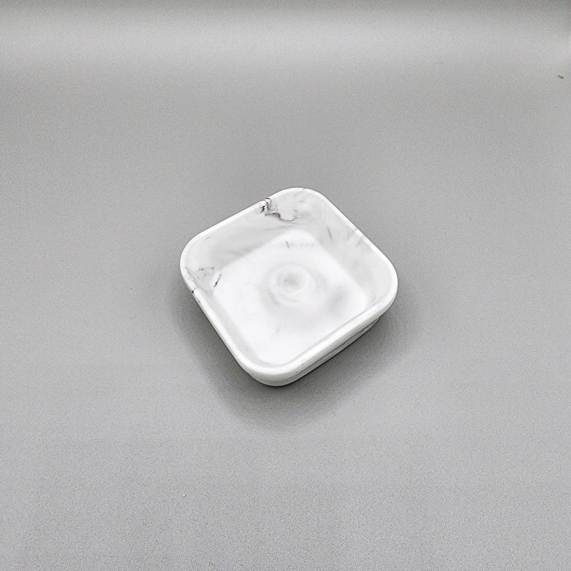 These square dishes are the perfect size to hold any small items and look great on a desk or table. They are made using a eco-friendly ceramic resin. They are sanded, and sealed.
