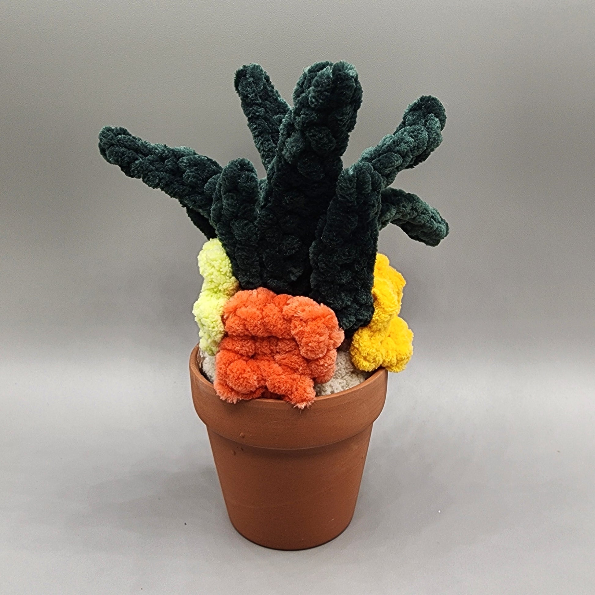 Add a touch of everlasting greenery to your home with these adorable plush crocheted succulents nestled in charming terracotta pots. Each succulent is lovingly handcrafted with soft plush yarn, adorable vibrant flowers, making them a perfect unique decorative accent.